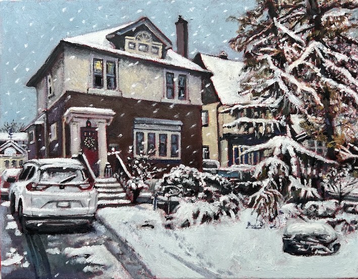 Snowfall on Mary Street (2024) 11″ x 14″ Oil on Canvas
